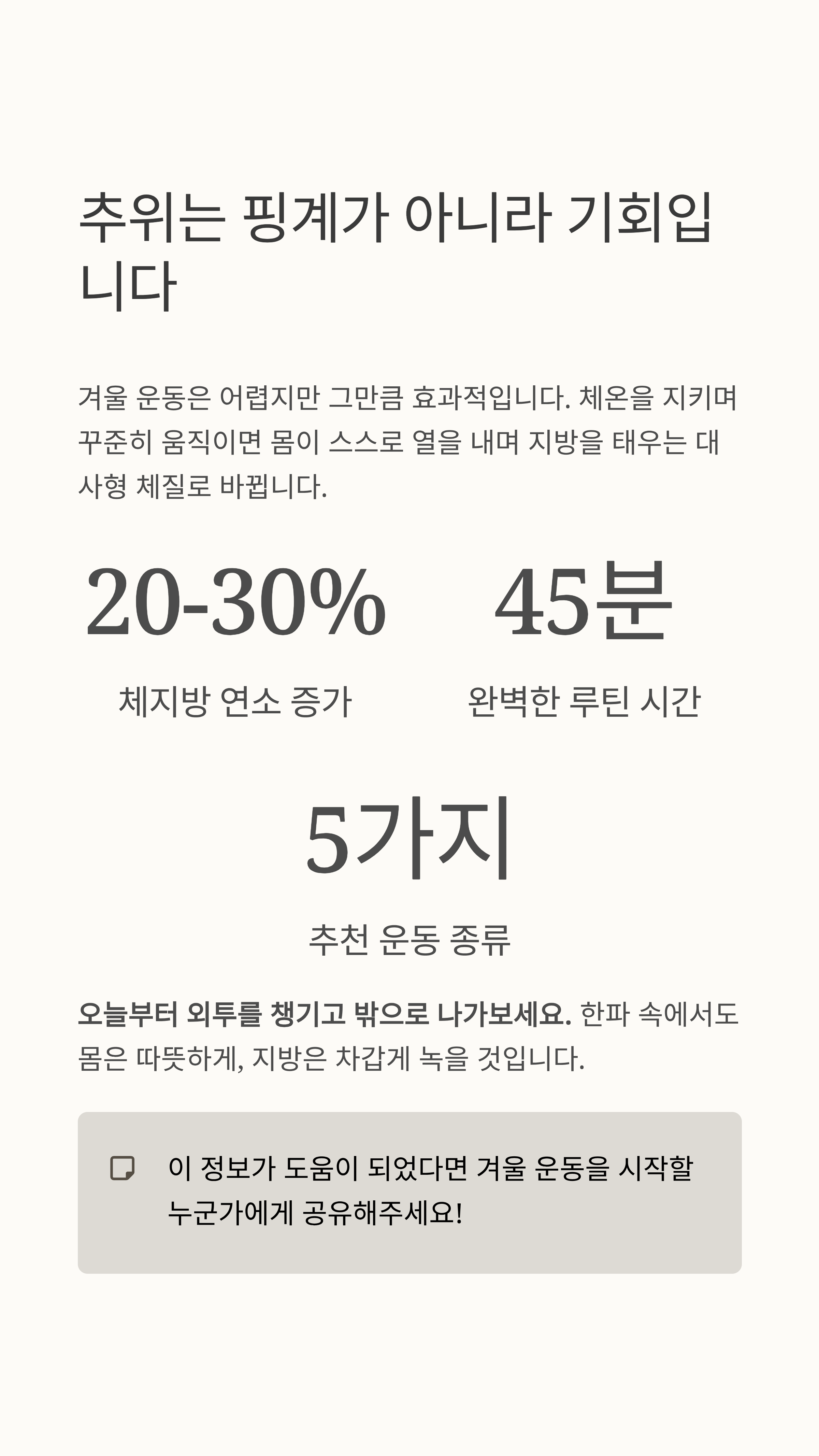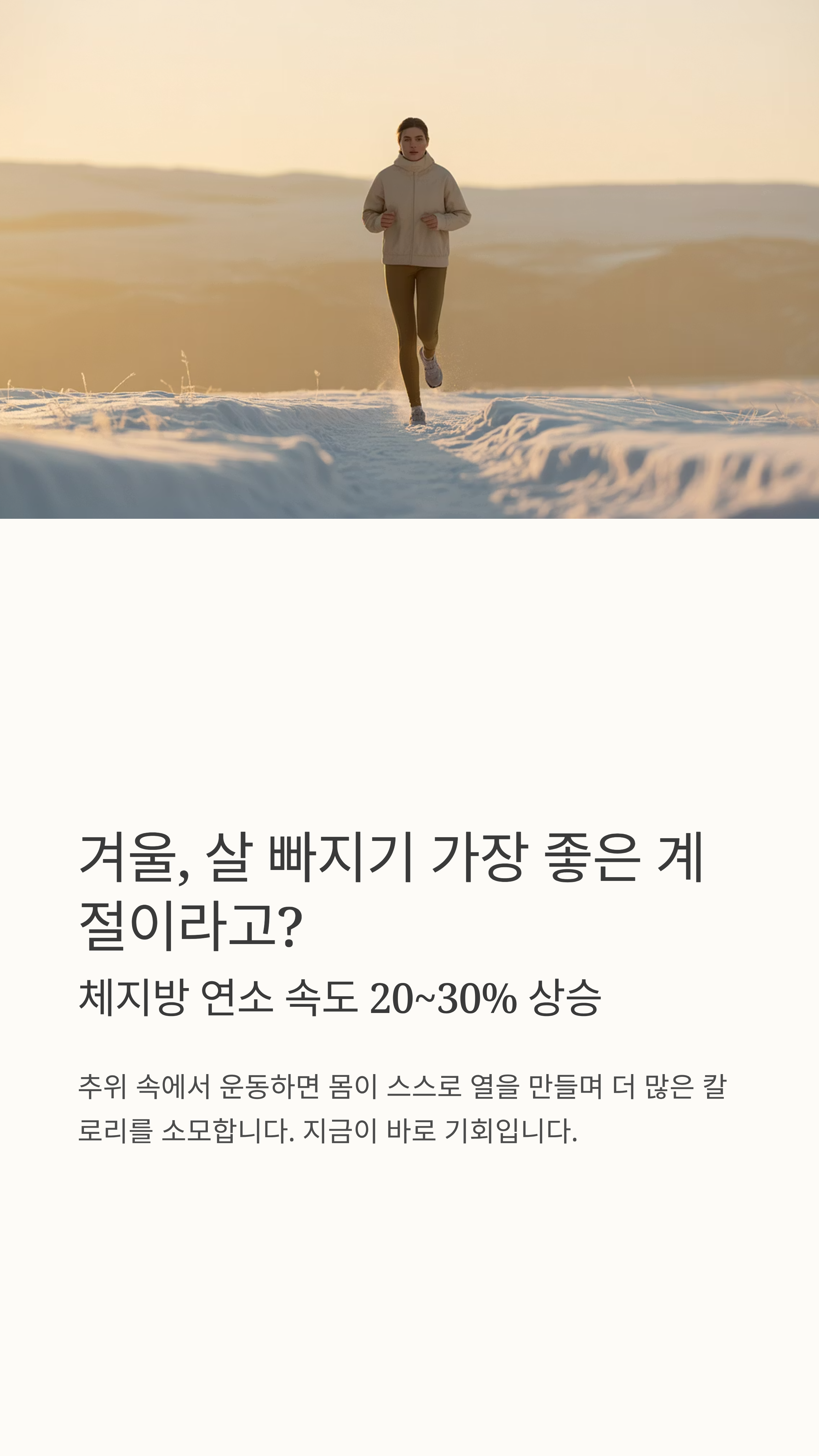 지방을 태우는 ‘대사형 체질’로 바뀝니다. 추위는 핑계가 아니라 기회입니다.
