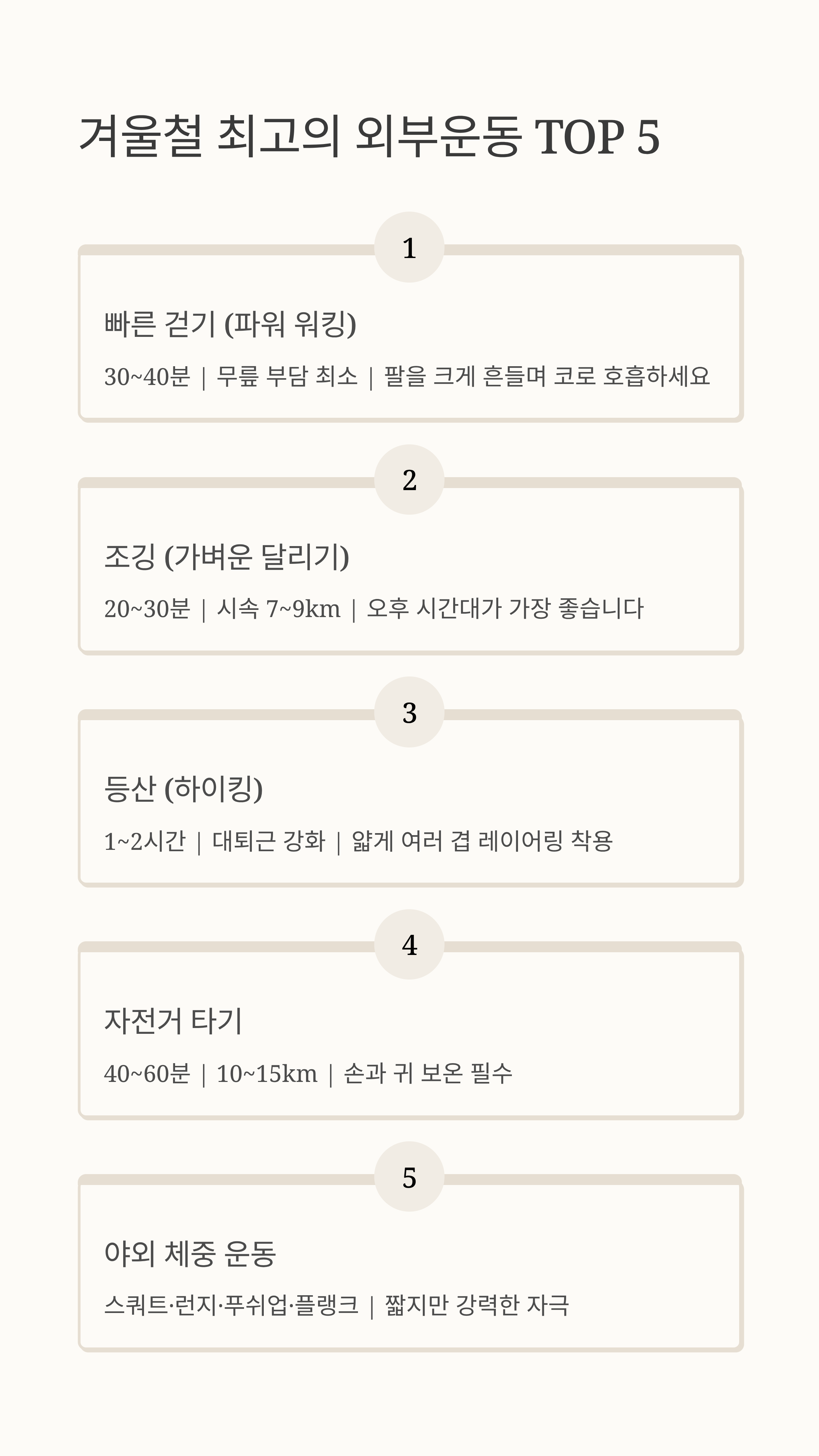 오늘은 겨울철 외부운동 추천 TOP5와 효율적으로 체지방을 태우는 실전 루틴을 함께 소개합니다.