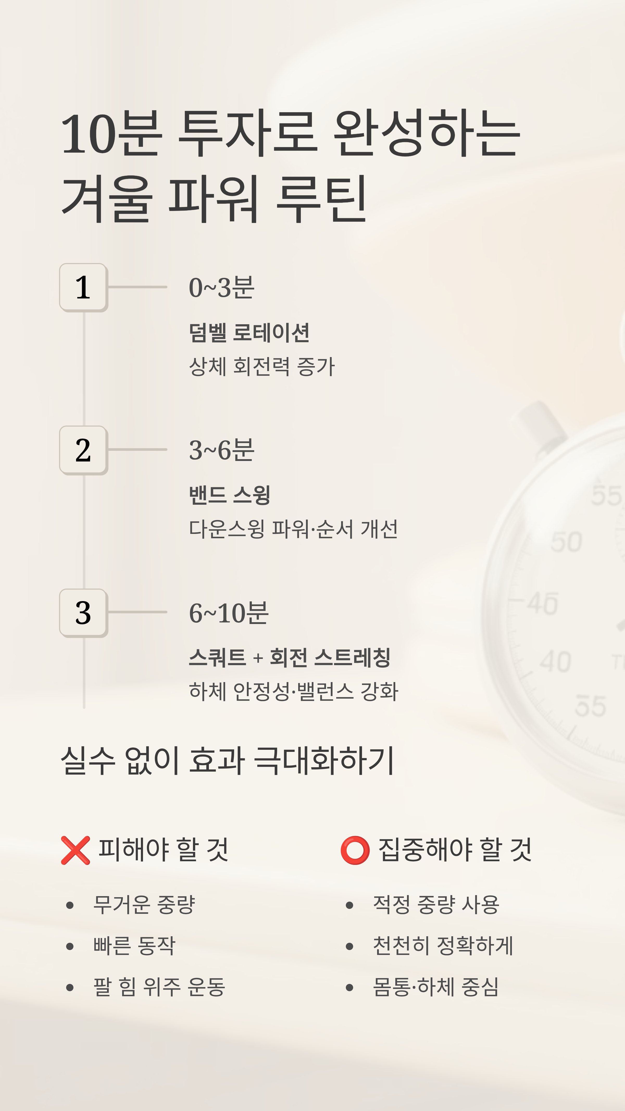 | 6~10분 | 스쿼트 + 회전 스트레칭 | 하체 안정성·밸런스 강화 |
