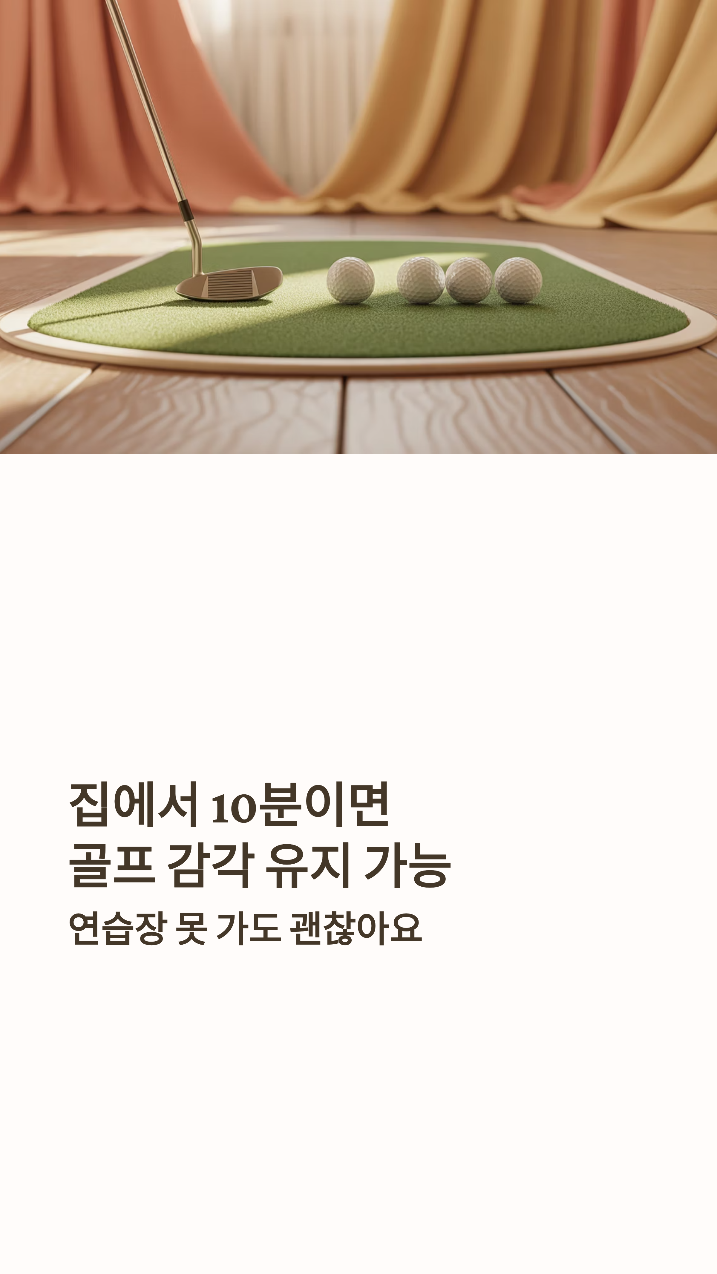 연습장을 못 가도 괜찮습니다. 집에서 매일 10분이면 골프 감각은 충분히 유지됩니다.