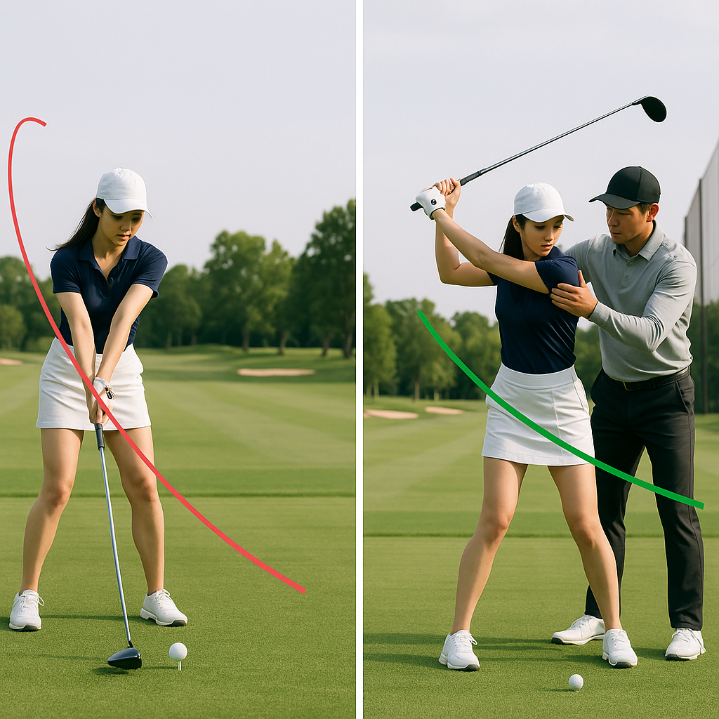 • 샬로윙 (Shallowing): 백스윙 탑에서 클럽 샤프트가 지면과 더 평행하게 눕는 듯한 동작입니다. 이는 클럽이 인사이드-아웃 궤도로 내려오게 하여 정확한 임팩트와 드로우 구질을 만드는 데 유리합니다.