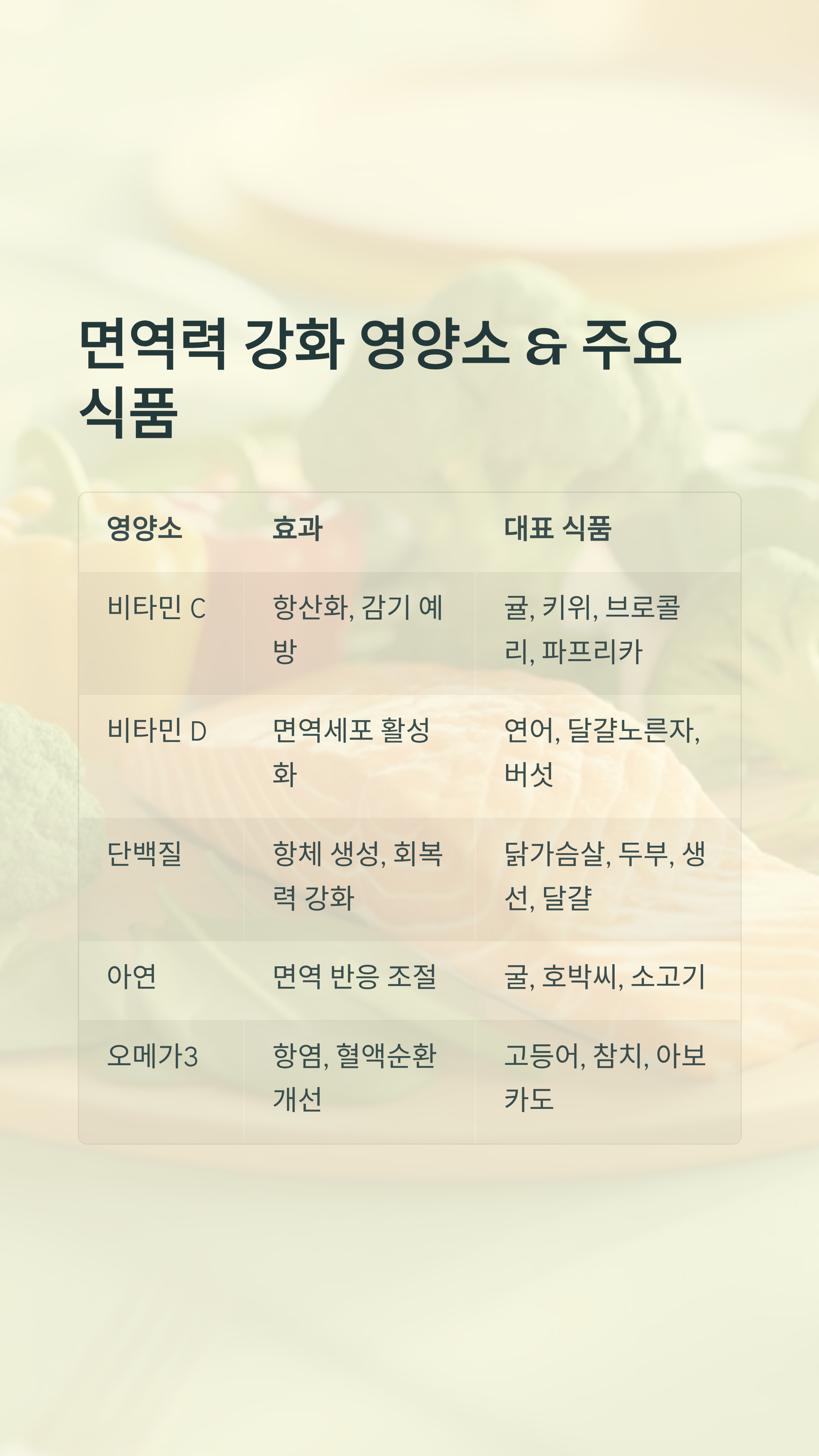 6. 면역력 강화 영양소 & 주요 식품표