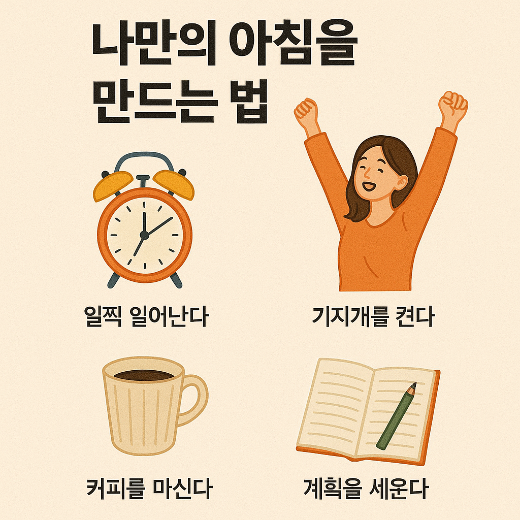 아침 시간을 고정된 구조로 구성하는 것이 핵심입니다. 예를 들어: