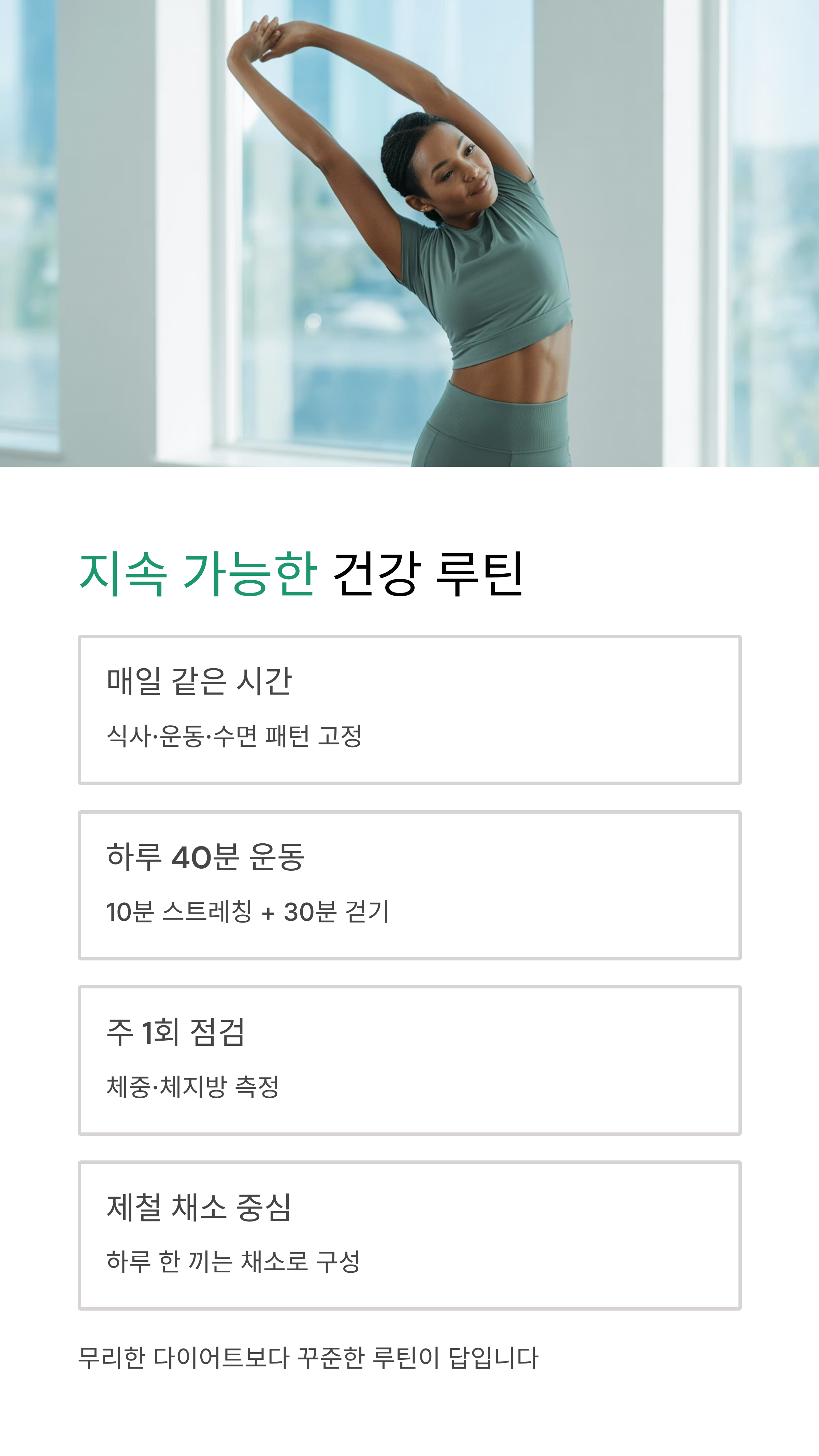 리셋 루틴이 일시적인 다이어트로 끝나지 않으려면 ‘지속 가능한 패턴’으로 만드는 것이 중요합니다.