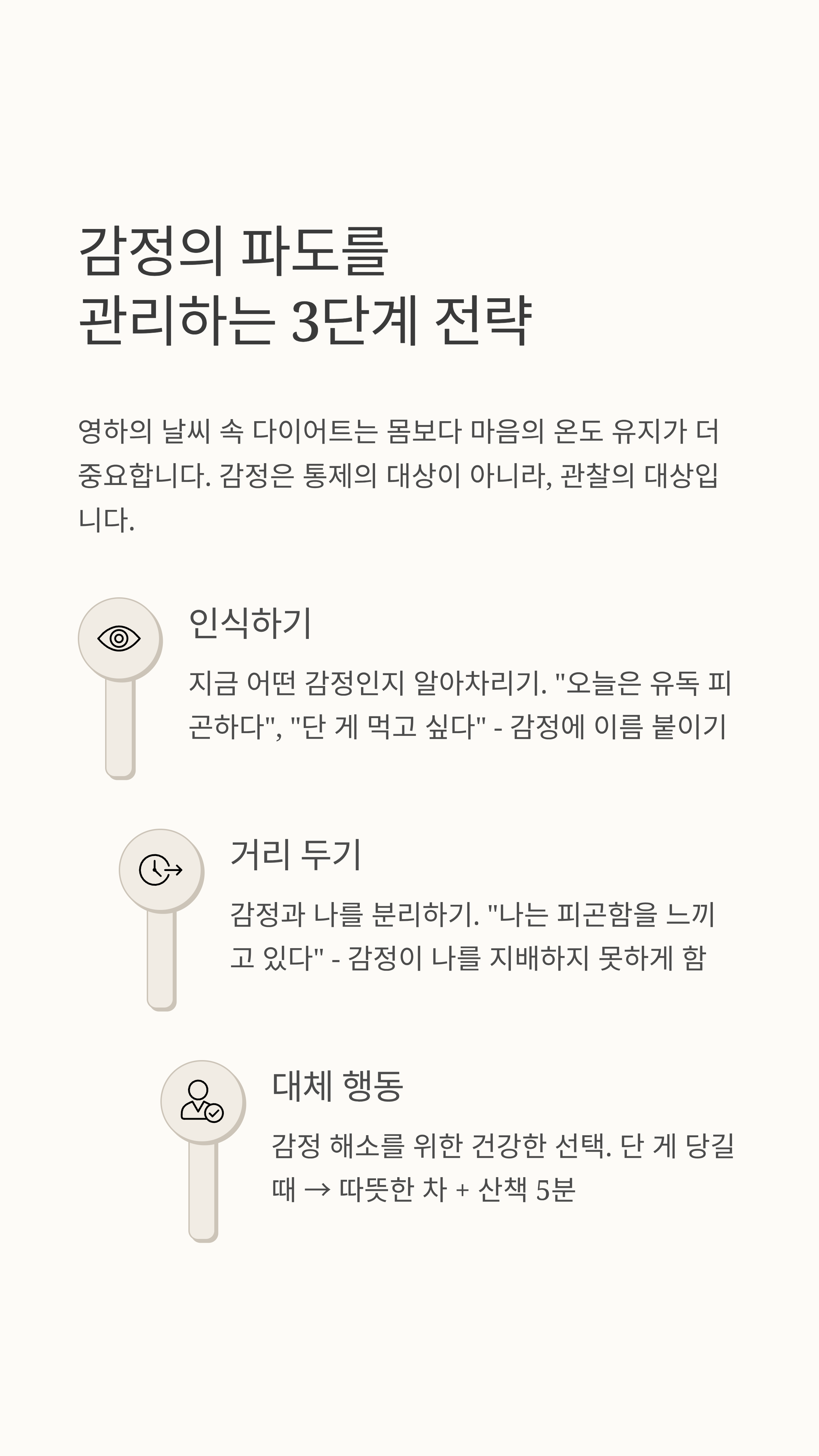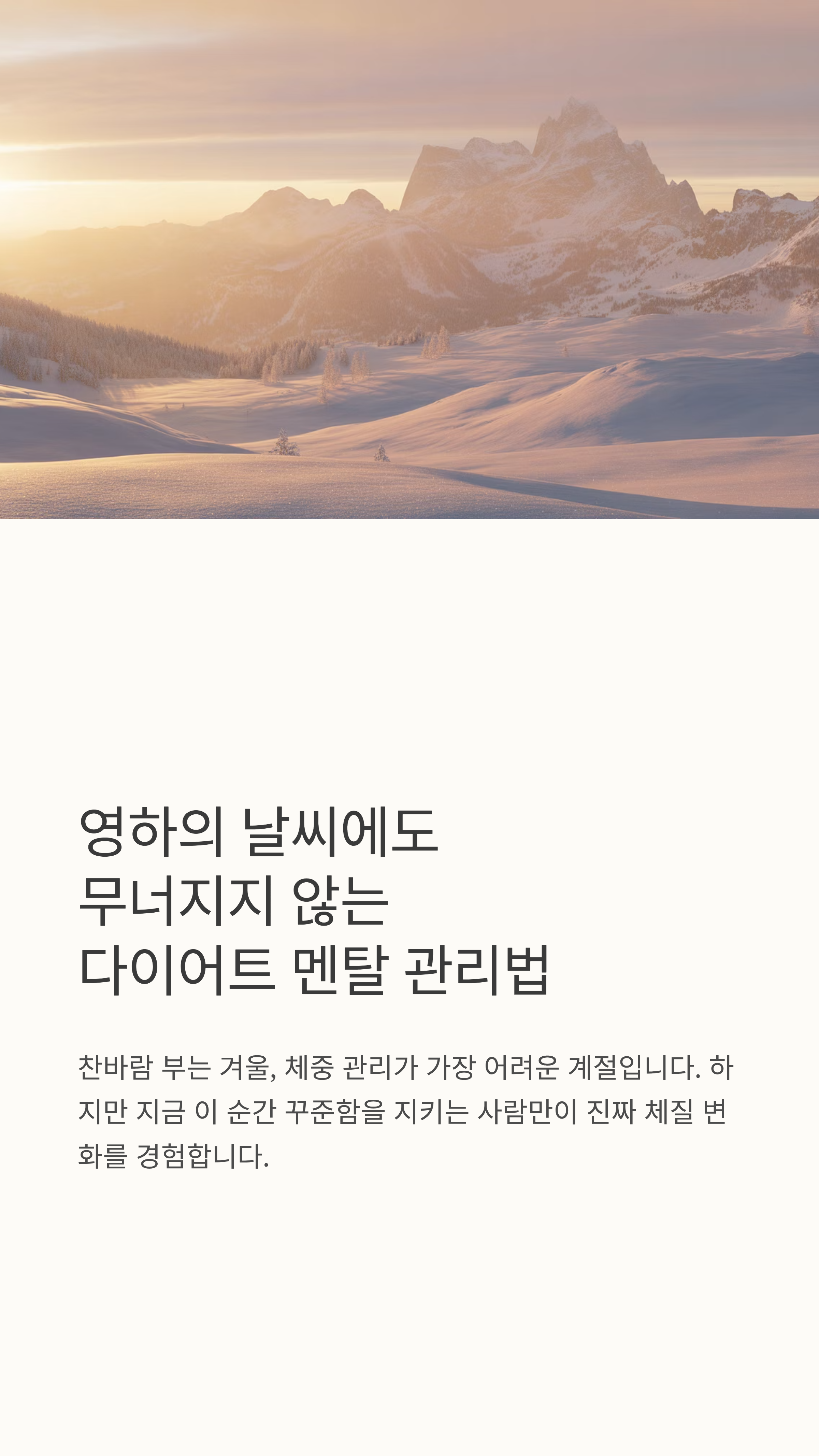 영하의 날씨 속 다이어트는 몸보다 마음의 온도 유지가 더 중요합니다. 감정은 통제의 대상이 아니라, 관찰의 대상입니다.