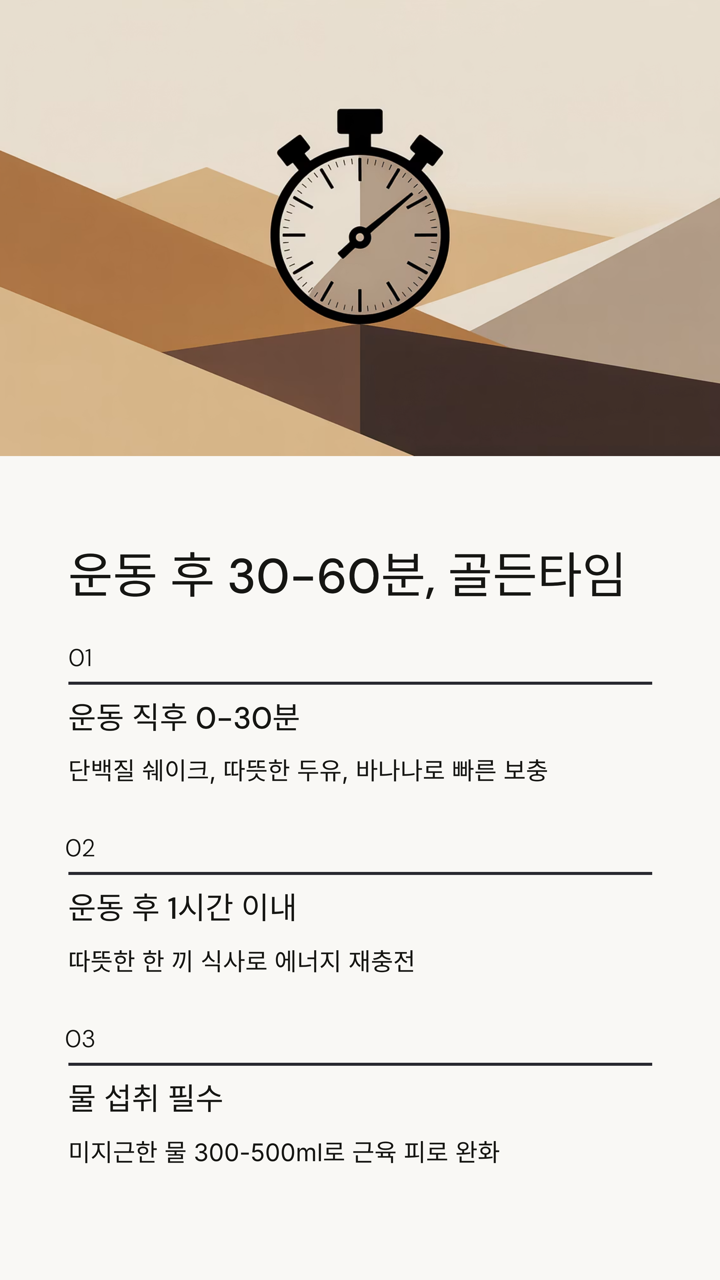 - 🥣 운동 후 1시간 이내 – 따뜻한 한 끼 식사로 에너지 재충전