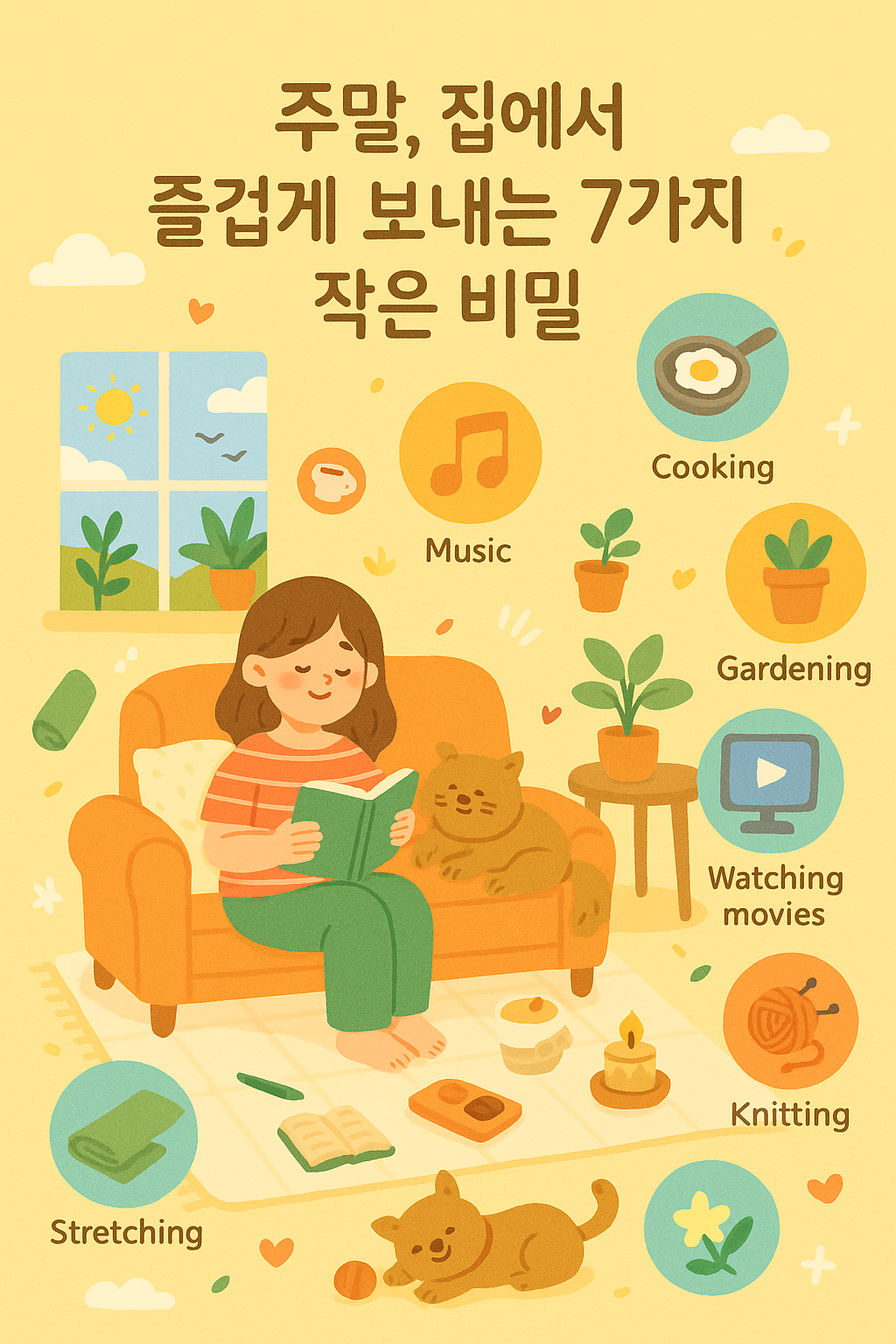 • DIY 만들기 : 간단한 인테리어 소품, 그림 그리기, 뜨개질 등 손으로 무언가를 만드는 활동은 성취감을 줍니다.