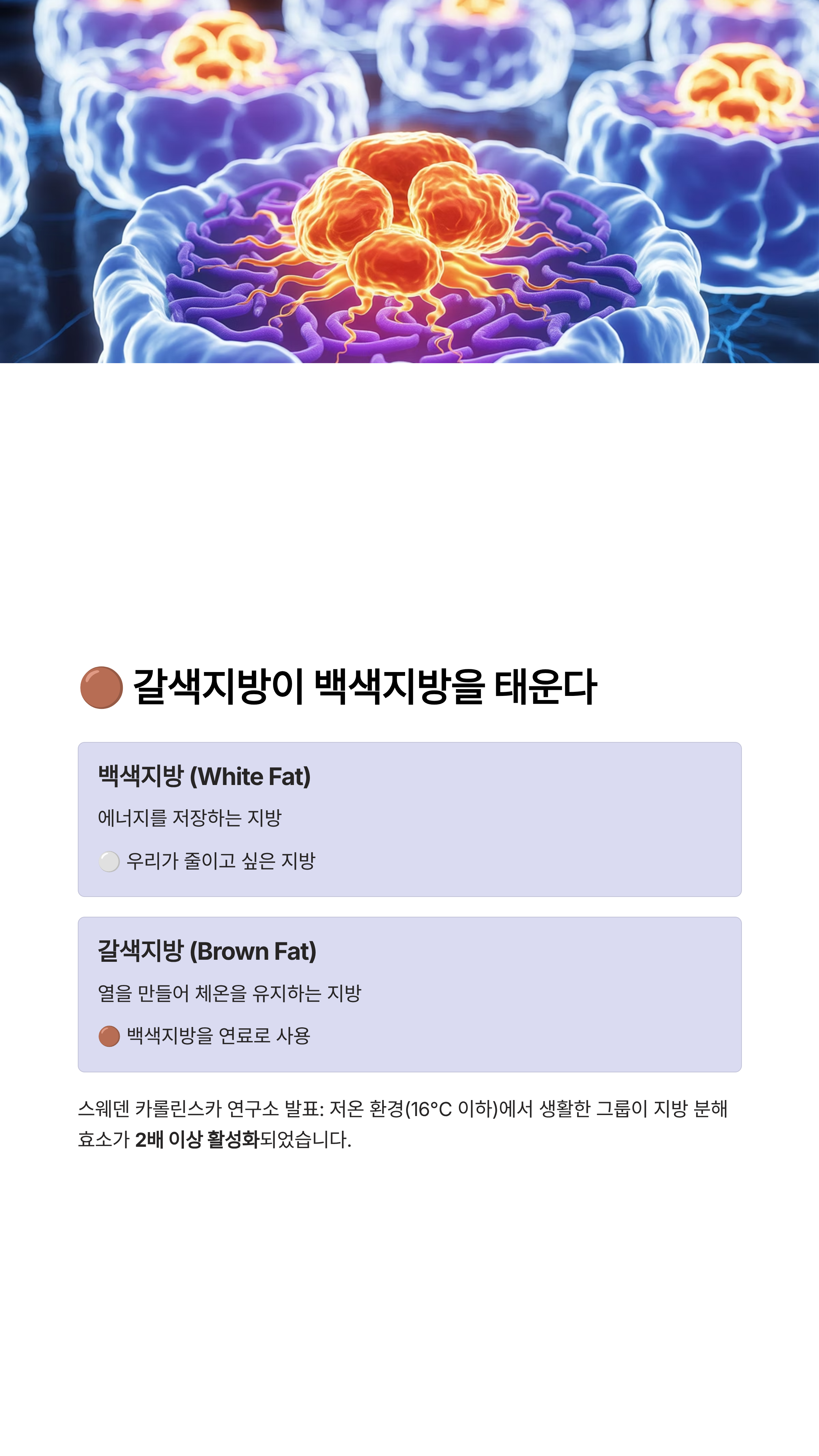 - 🟤 갈색지방(Brown Fat) – 열을 만들어 체온을 유지하는 지방