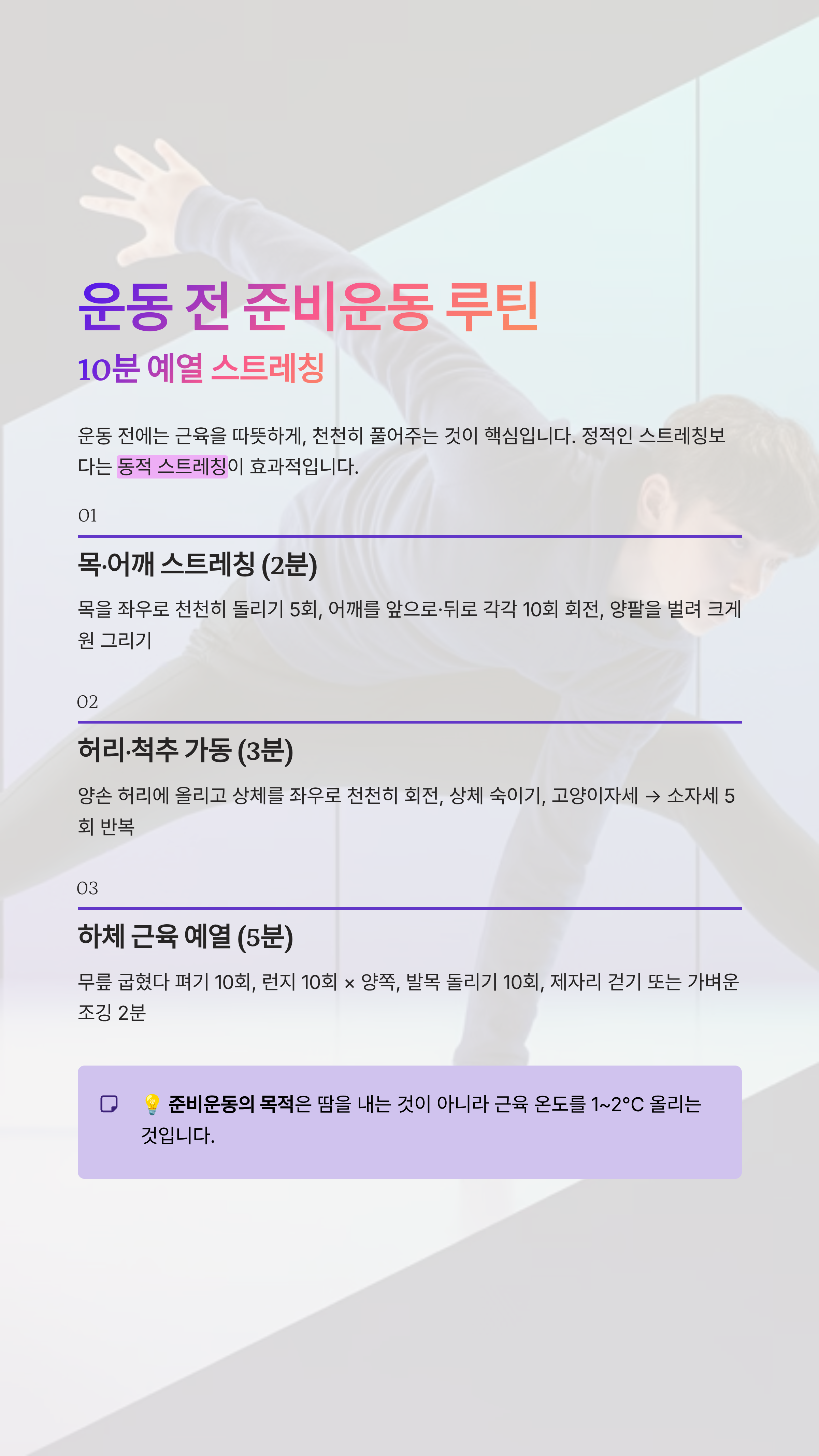 2. 운동 전 준비운동 루틴 (10분 예열 스트레칭)