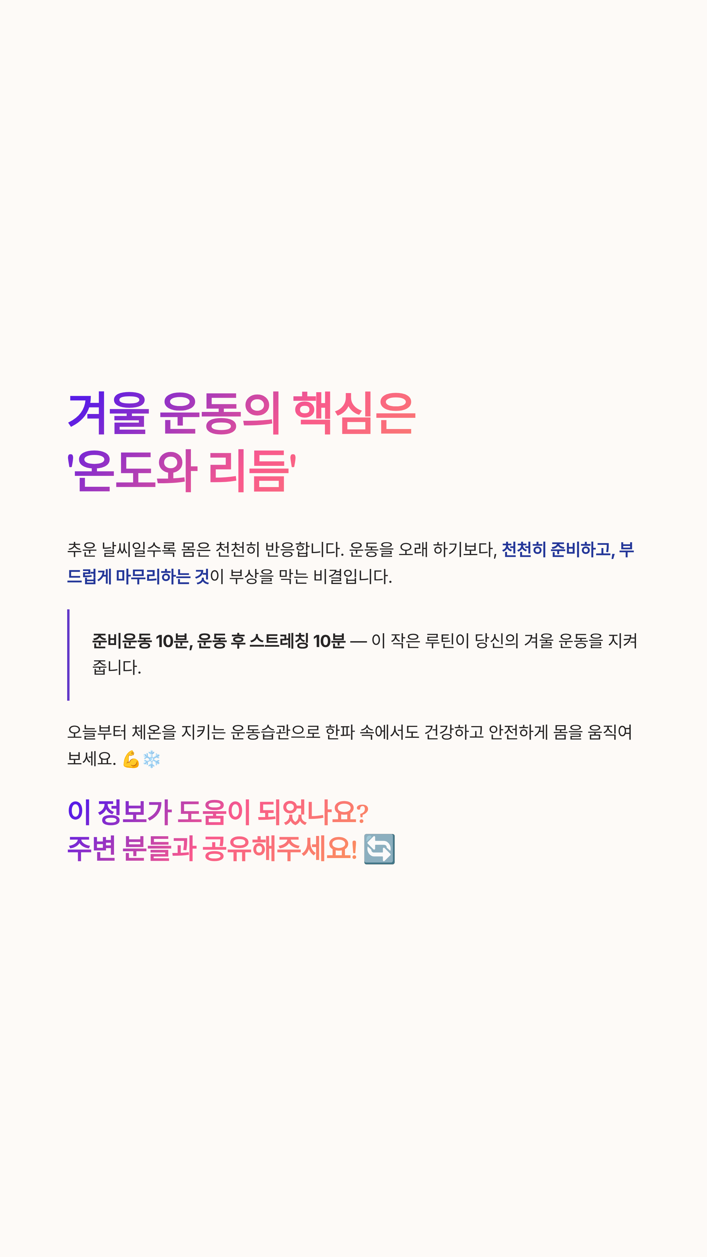 결론: 겨울 운동의 핵심은 ‘온도와 리듬’