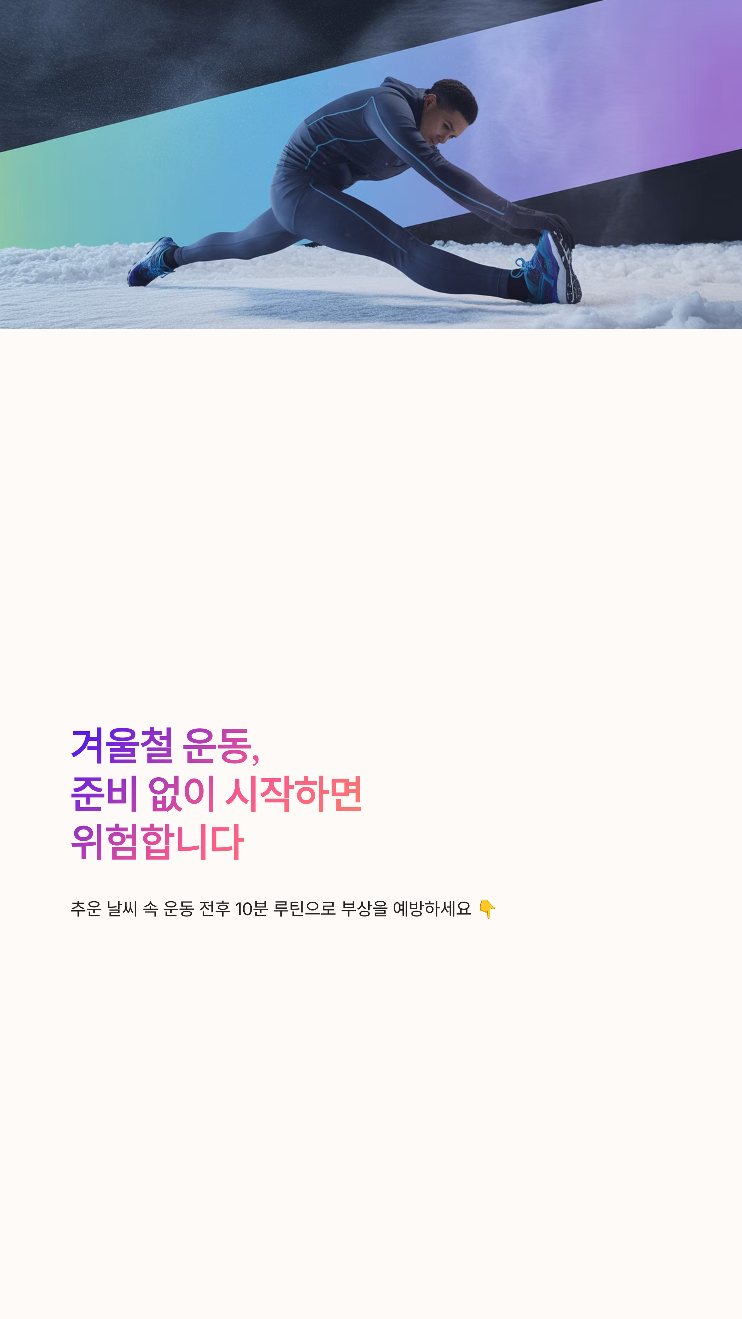 👉 따라서 겨울철에는 ‘운동 전 10분, 운동 후 10분의 루틴’이 필수입니다.