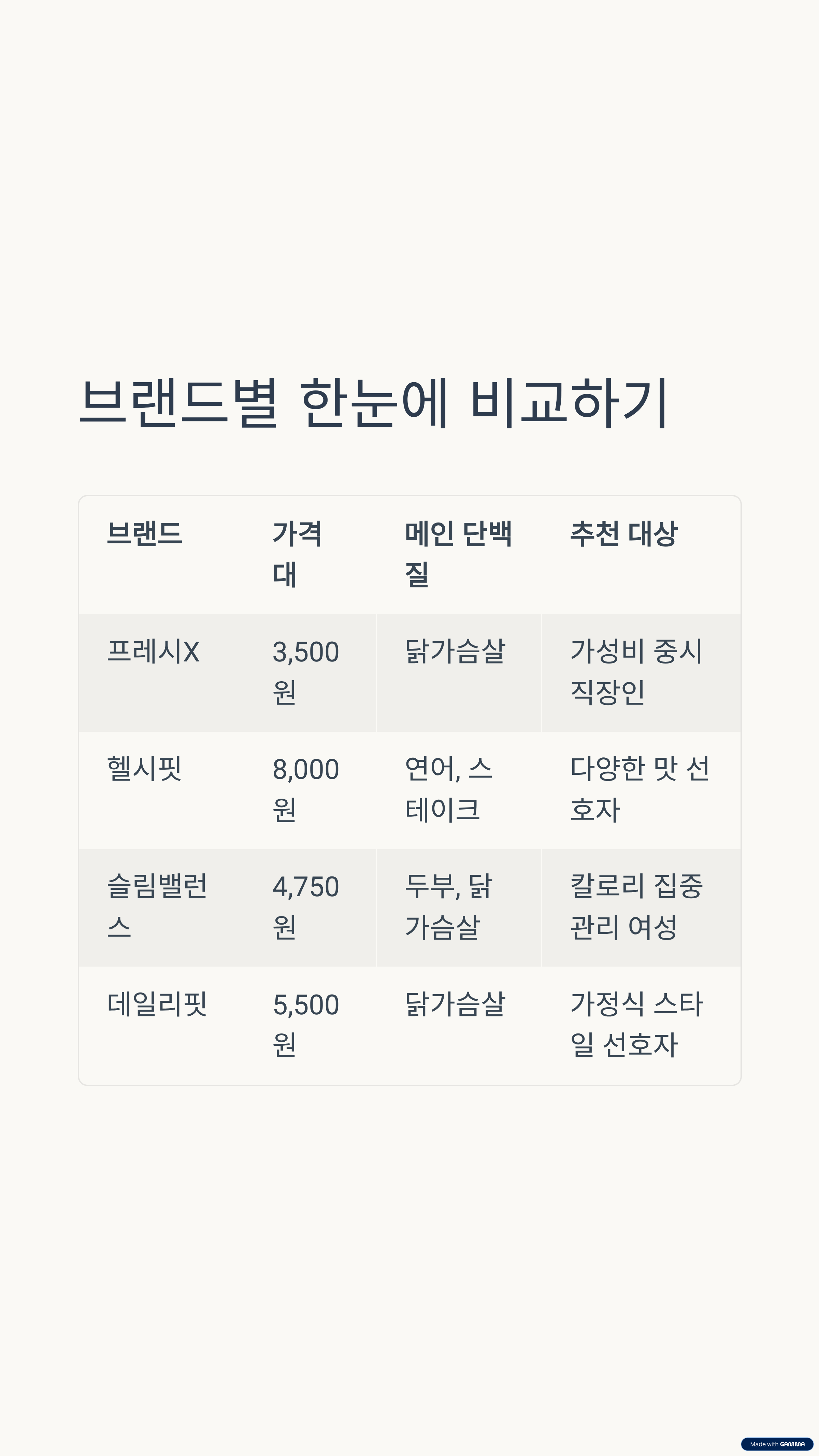 4. 다이어트 도시락 브랜드 비교 표